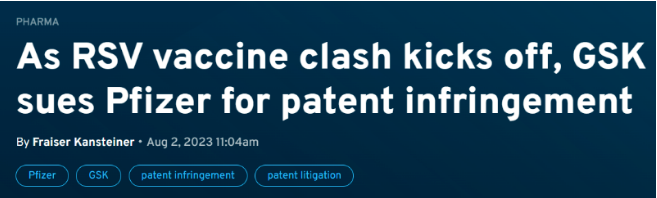这一前一后相继获批的RSV疫苗在市场上开始打起了“专利战”。据悉,葛兰素史克向特拉华州联邦法院提交的文件中称,辉瑞的RSV疫苗Abrysvo在未经许可的情况下“故意在Abrysvo中应用GSK的发明”。