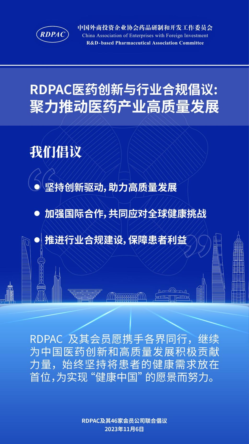 RDPAC及其会员愿携手各界同行,继续为中国医药创新和高质量发展积极贡献力量,始终坚持将患者的健康需求放在首位,为实现“健康中国”的愿景而努力!