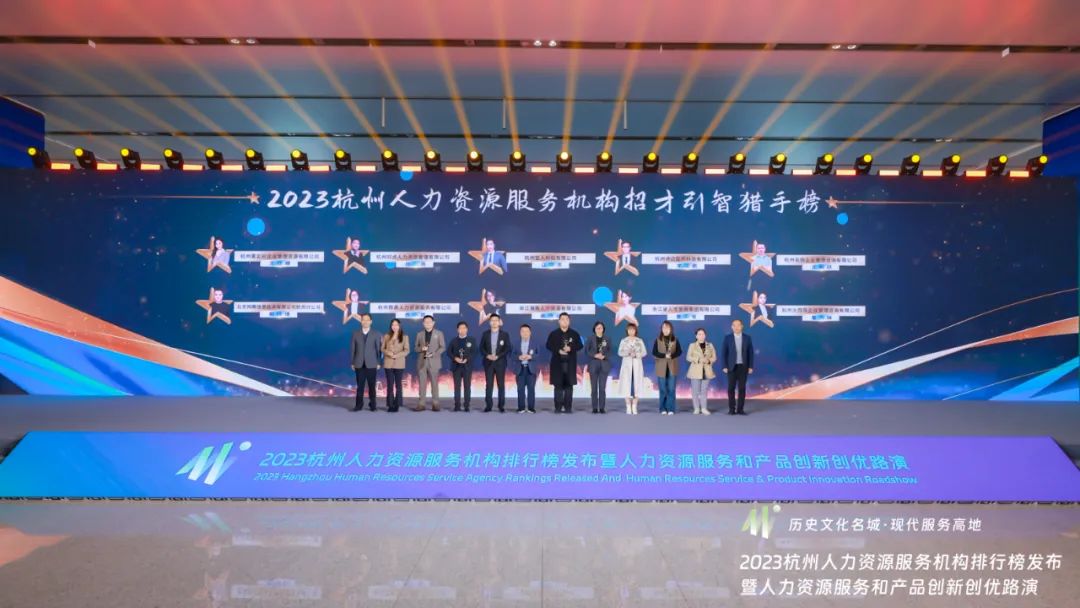 11月15日,2023杭州人力资源服务机构排行榜发布暨人力资源服务和产品创新创优路演在杭州西站盛大开幕,现场发布了“2023杭州人力资源服务机构招才引智群英榜、猎头榜及首次发布杭州市人力资源服务业重点培养企业风云榜”三个榜单,mg电子试玩咨询“三榜齐辉”。