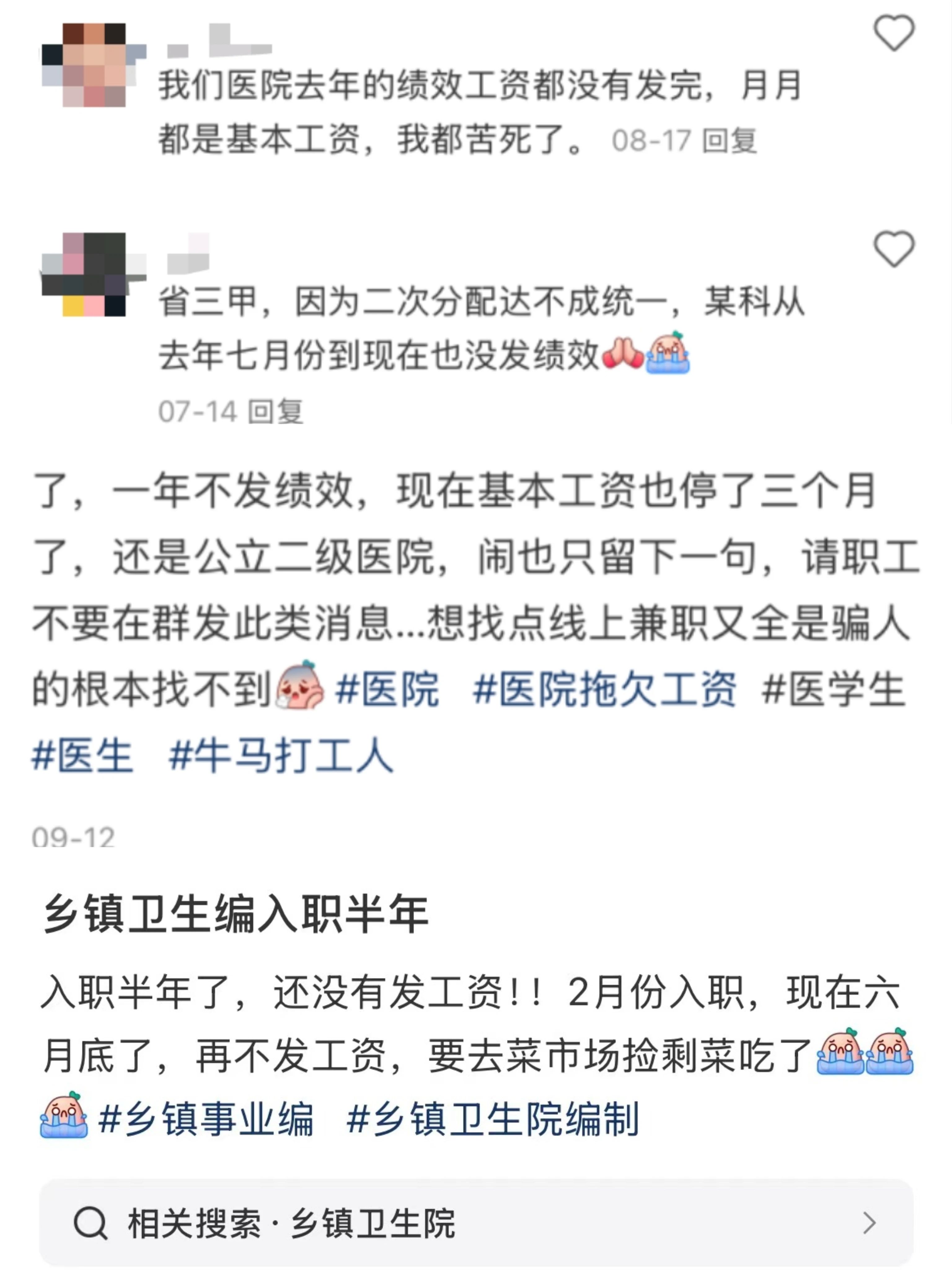 其实,对医护人员而言,降薪或许还算是一种可以勉强接受的现实,毕竟这被视为行业在特定时期所面临的暂时性困境,尚有克服的希望和转机。然而,目前的实际境况却远比这更为严峻和复杂。全国各地,无论是民营还是公立,无论是省市级大型医院还是基层医疗机构,都纷纷出现了欠薪的案例,这一普遍现象无疑给医护人员带来了沉重的打击。