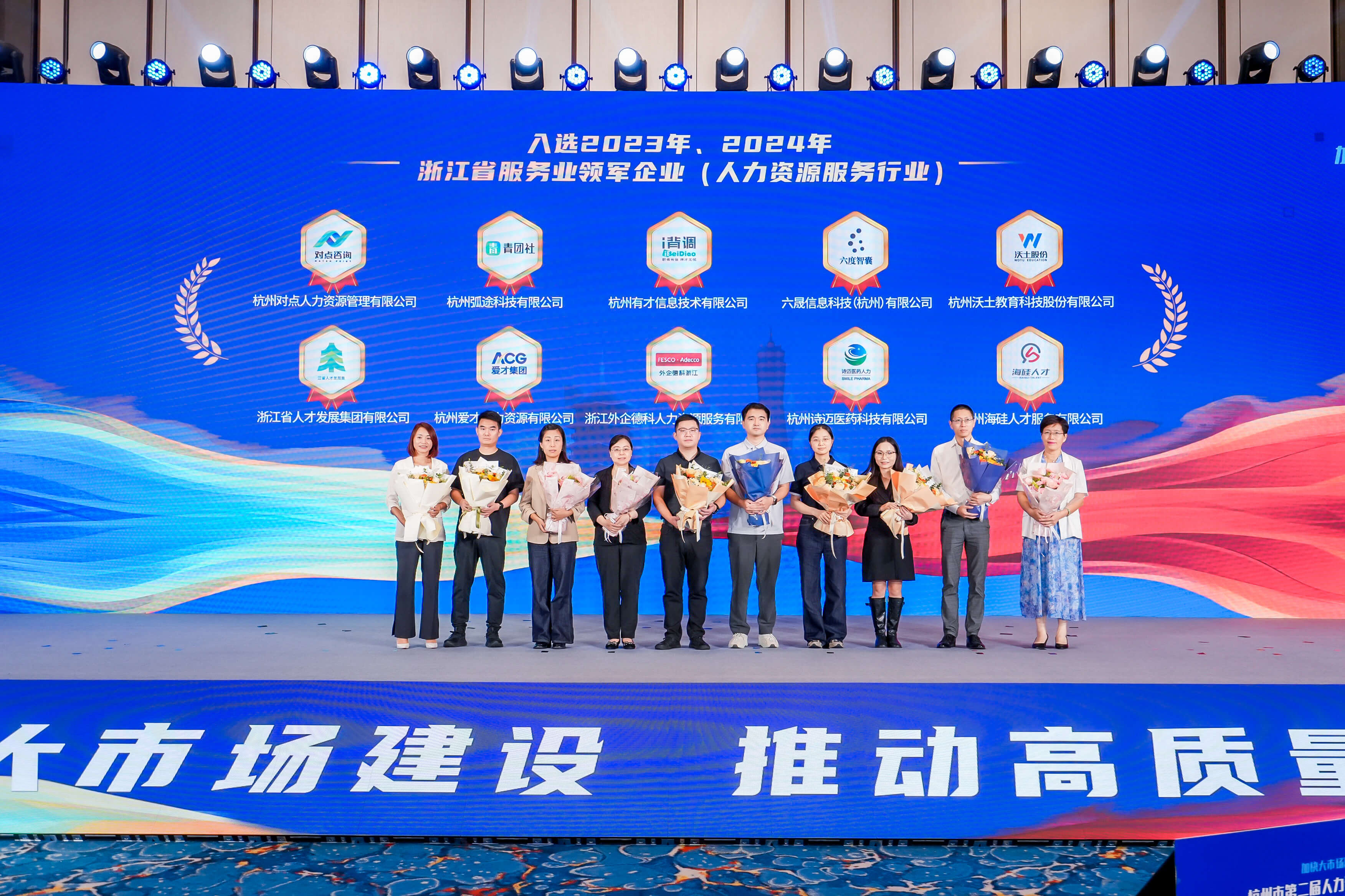 mg电子试玩集团以专注医药人力入选2024浙江省服务业领军企业,做为标杆代表受邀参会,与来自全国各地的千余名人力资源专家、企业负责人共赴行业盛宴,深度探讨人力资源服务高质量发展新方向。