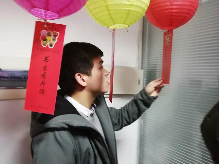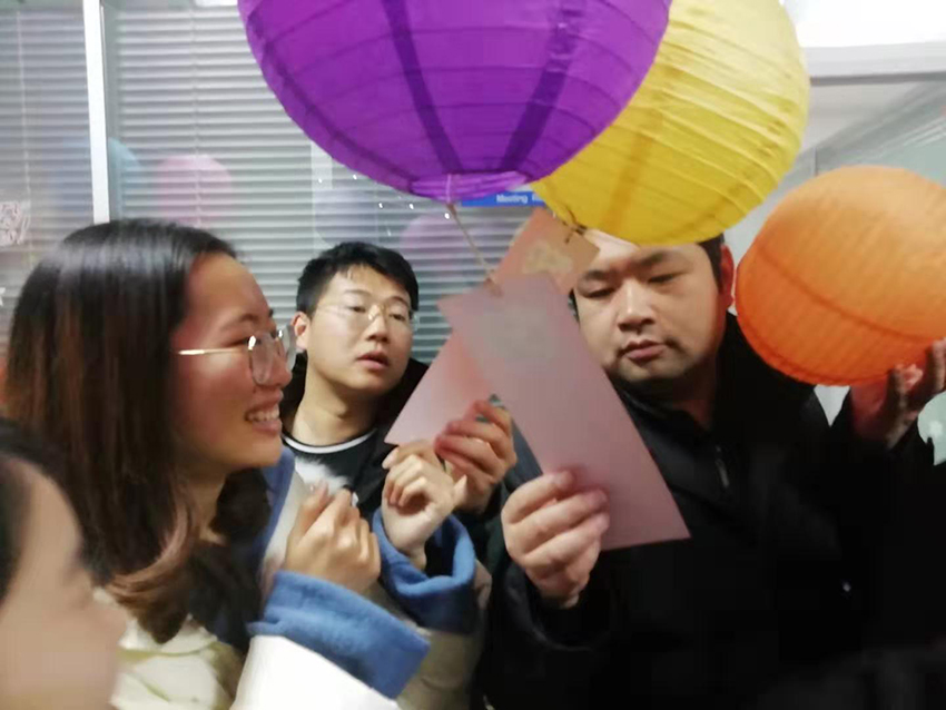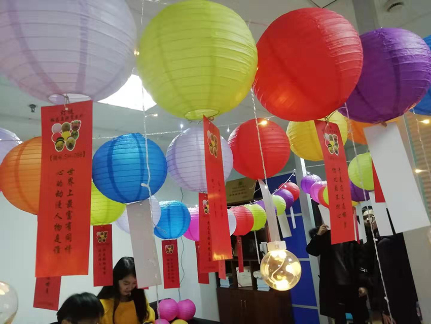 五彩斑斓的灯笼挂满了办公室,让原本有点严肃的办公室染上了早春的颜色。大家看着缤纷的灯笼纷纷拿出手机记录下这一刻。