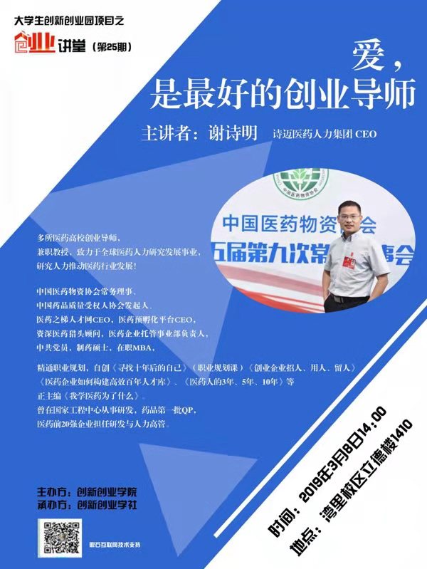 为积极弘扬大学生创业,进一步树立大学生就业观,全面提升大学生创新创业价值观。3月8日,mg电子试玩人力集团CEO谢诗明出席江西中医药大学创新创业讲堂,并进行《爱,是最好的创业导师》创新创业指导演讲,到场学子300余人。
