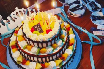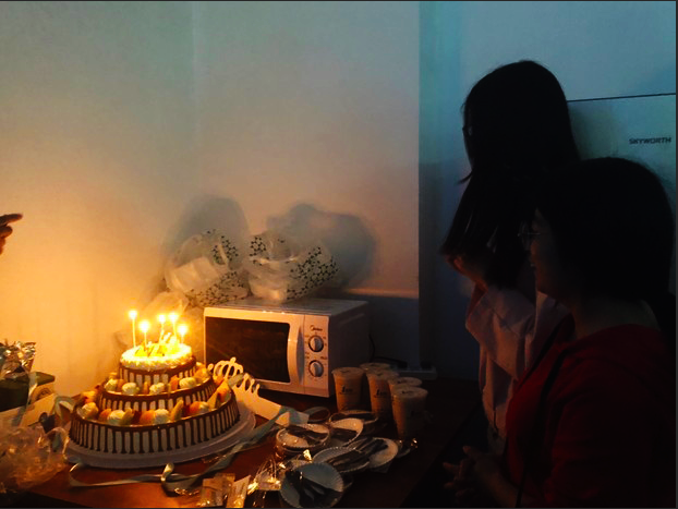 四位寿星到齐聚,但灯光再次熄灭,换上蛋糕上闪动这黄色的烛光,祝福声,生日歌声,怕打着节奏的掌声。寿星闭上眼睛,满怀真诚的许下自己的心愿。