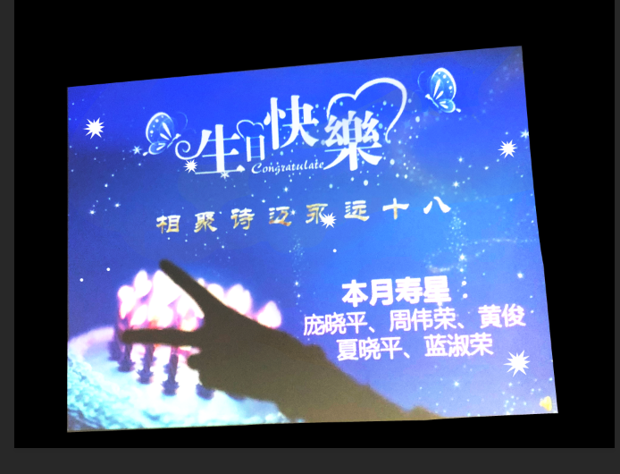 在黑暗中,投影仪的光渐渐在mg电子试玩508的白墙上汇聚出上图的生日快乐。哎!哎!这么多了个手影。。。你们是真滴皮。(哈哈,在mg电子试玩我们氛围就是这么皮,别在意!别在意!)