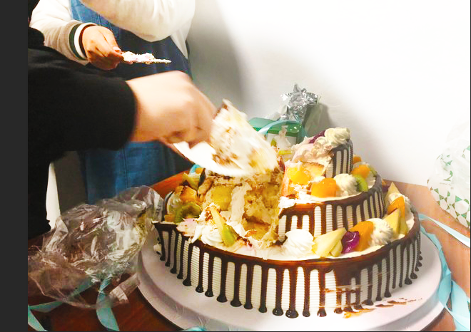 “生日快乐!”一阵欢呼中灯重新照亮了我们508。“嘿嘿!刚说不关我事的巧克力蛋糕,现在可关你的事了。”